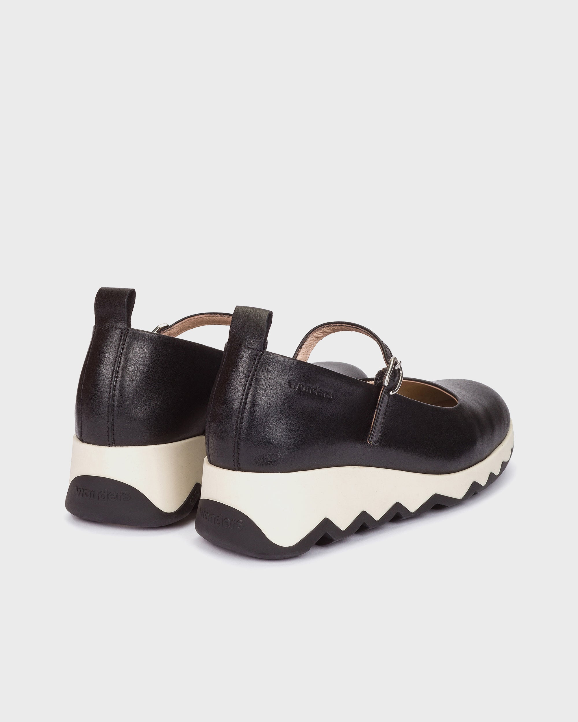 AMANDA Mary Jane shoes, crafted in  leather. This classic model combines traditional style with a sporty edge, thanks to its dual-tone ridged sole developed with EvoLight technology, ensuring lightness and cushioning. The MemoryGel insole offers exceptional comfort, making them the perfect option for everyday wear. Wonders supports sustainability certified by LEATHER WORKING GROUP.