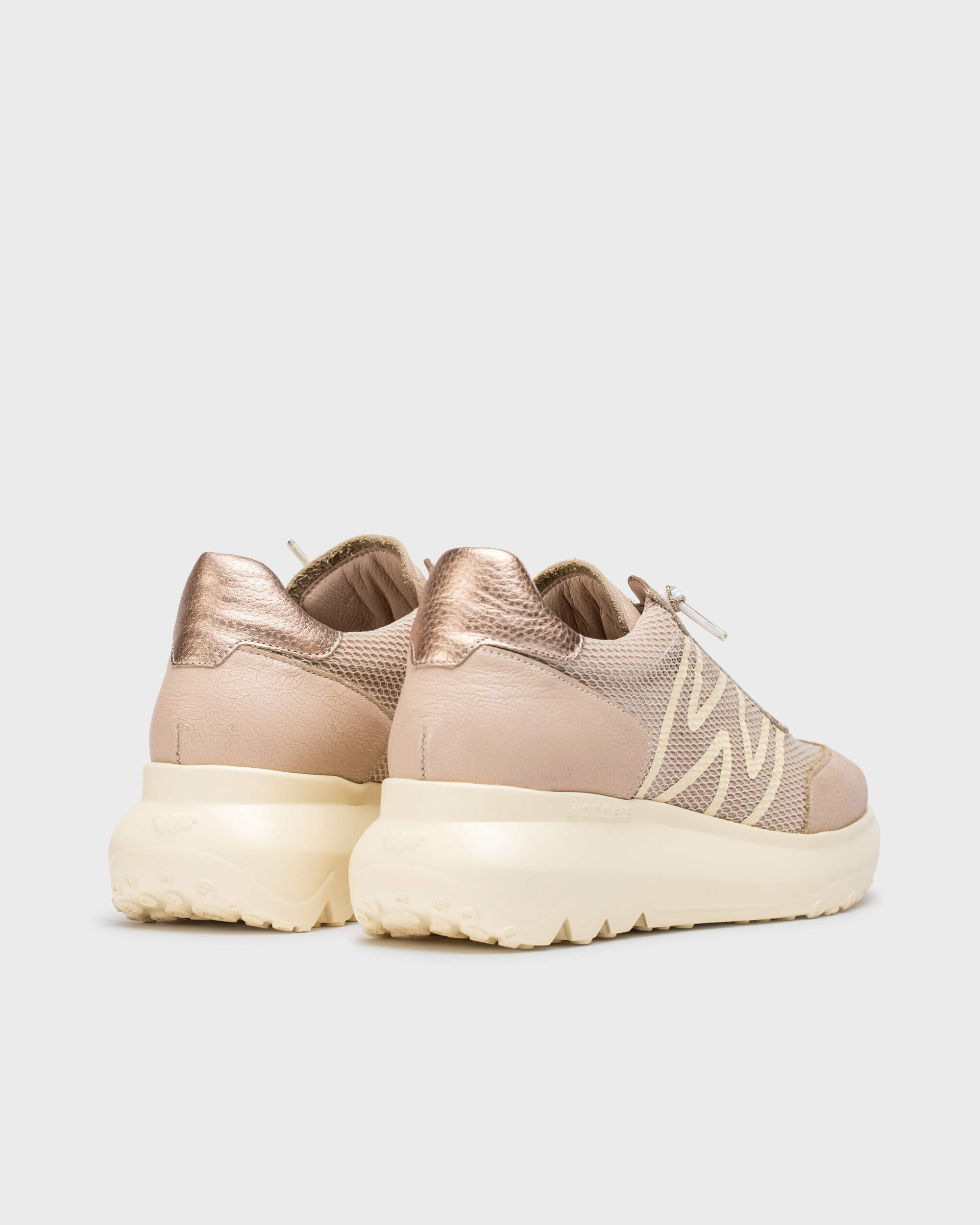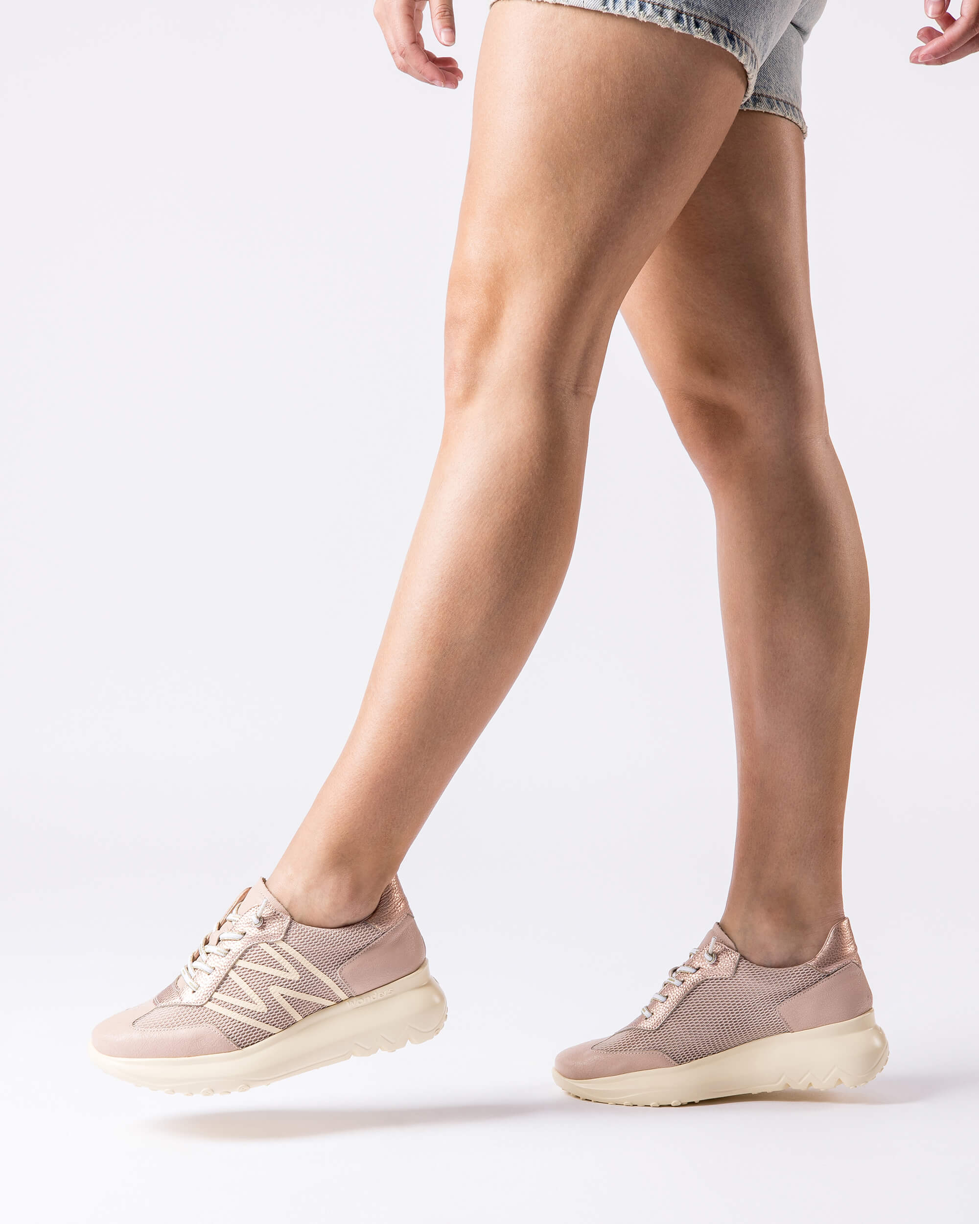 AZURE sneakers made from a combination of leather and textile. Inspired by running style, these sneakers offer the perfect balance of sportiness and fashion. Featuring the "W" printed on the outer side and an elastic lace closure for an ideal fit. The WondersFly™ technology sole by XL EXTRALIGHT® ensures exceptional lightness and extraordinary comfort. The removable MemoryGel insole adapts perfectly, ensuring comfort in every step. Ready to feel the #YesWeFly sensation. Wonders supports responsible manufacturing certified by LEATHERWORKINGGROUP.