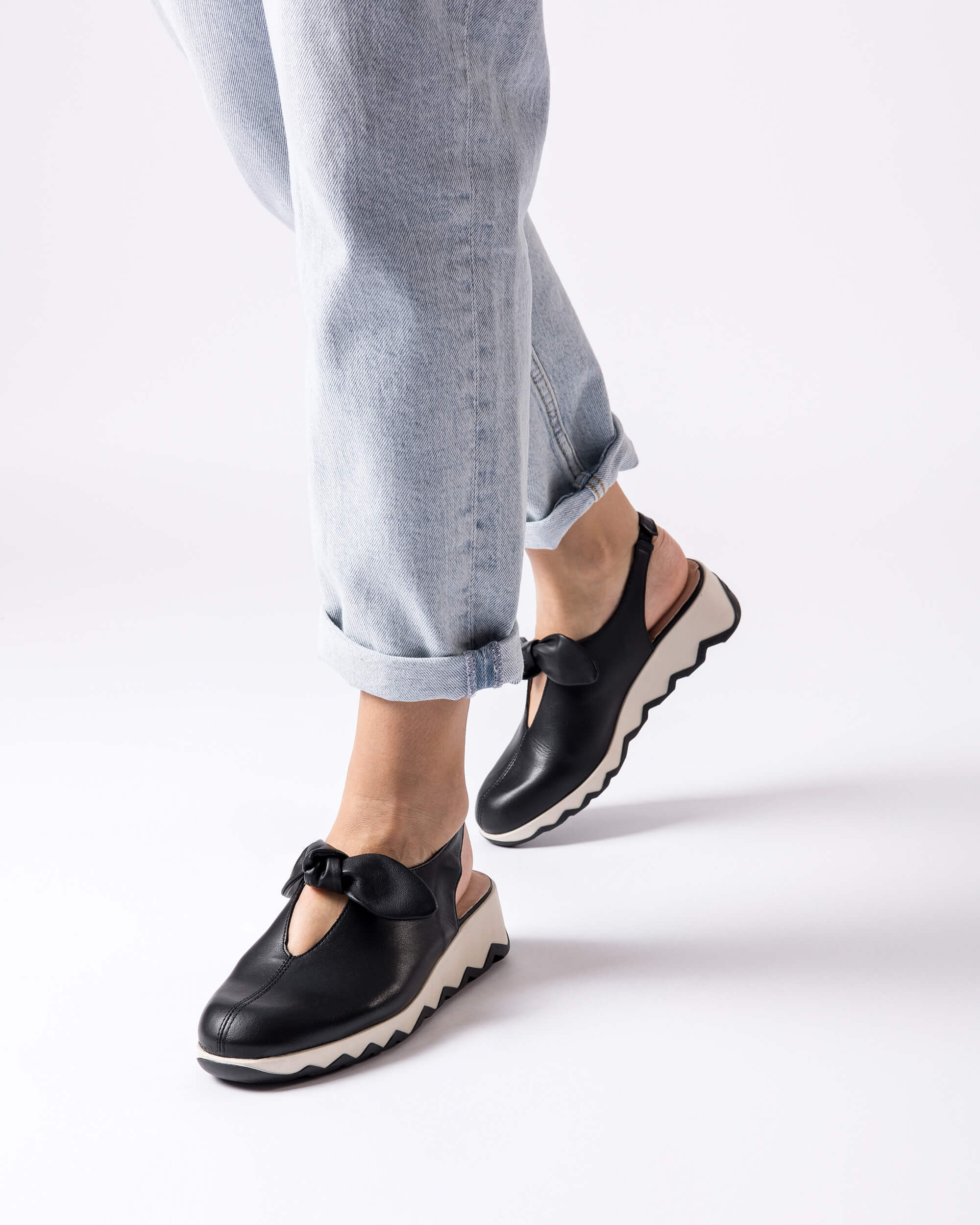 Chaussures sling back, fabriquées en cuir, avec un joli nœud. Ce modèle classique combine un style traditionnel avec une touche sportive, grâce à sa semelle striée bicolore développée avec la technologie EvoLight, assurant légèreté et amorti. La semelle intérieure MemoryGel offre un confort exceptionnel, ce qui en fait l'option parfaite pour un usage quotidien. Wonders soutient la durabilité certifiée par LEATHER WORKING GROUP.