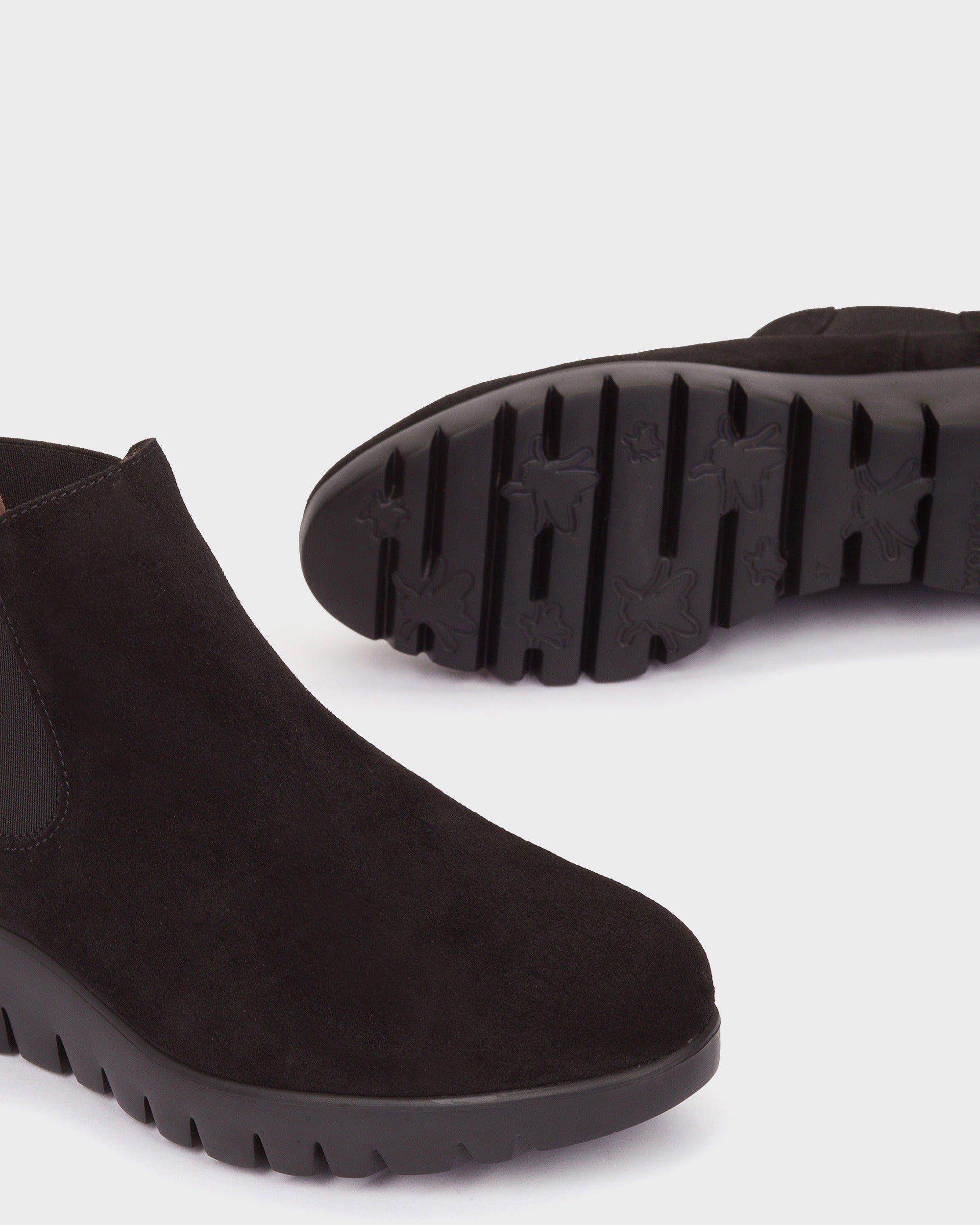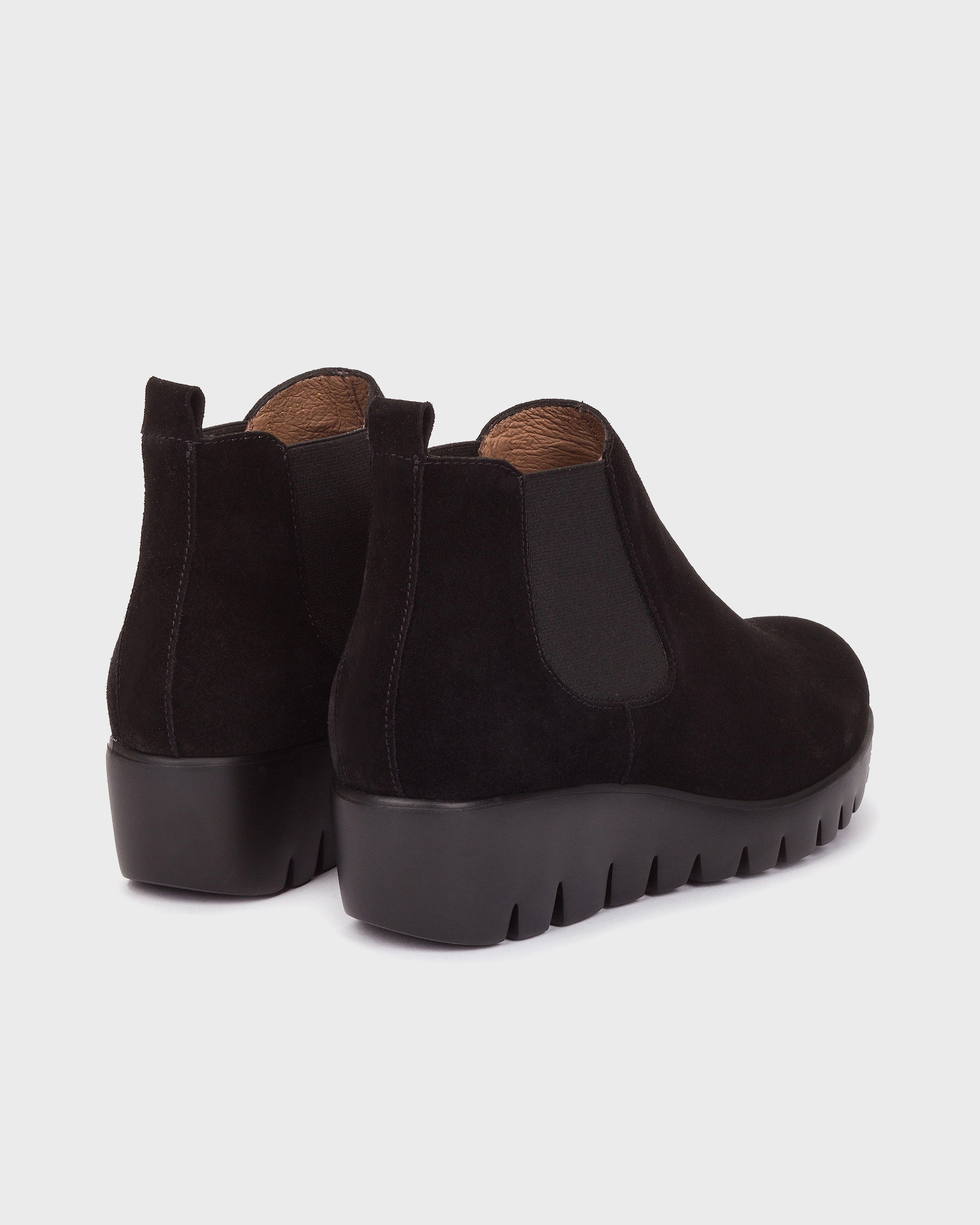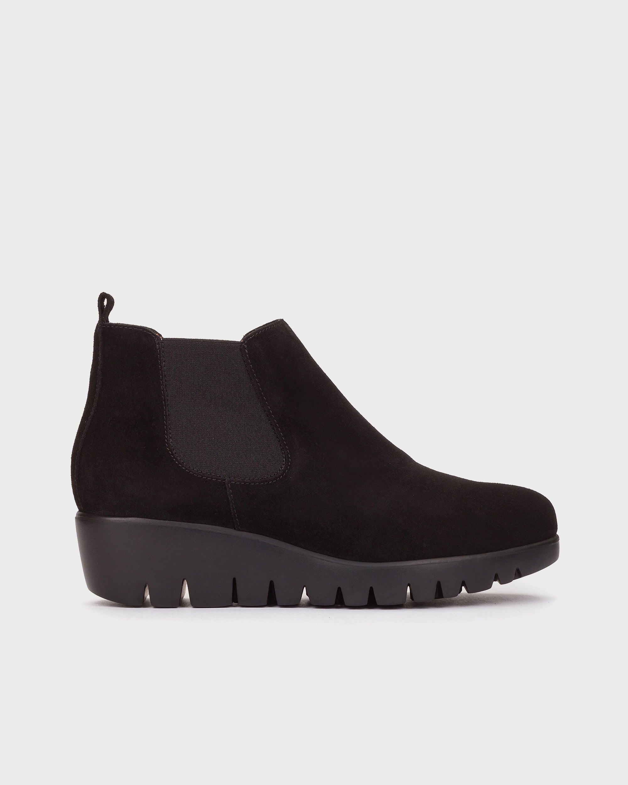 Elegant wedge ankle boot made from waterproof suede with elastics on both sides for easy on and off. Its WondersFly™ technology ensures unparalleled lightness, while the MemoryGel insole guarantees comfort with every step. Get ready for the #YesWeFly feeling. Wonders supports sustainable manufacturing certified by LEATHER WORKING GROUP.